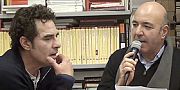 Il cantautore della scuola genovese incontra i numerosi curiosi nella sala del Labirinto, qualche ora prima del concerto. Con lui Paolo Zicconi, professore e artista algherese