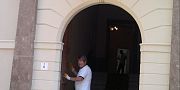 in vista dell’imminente insediamento del Consiglio Comunale ad Alghero previsto per venerdì 20 giugno (ore 10) il restauratore ha voluto ritoccare il portone di via Columbano