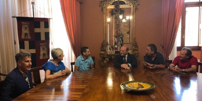 SASSARI – Questa mattina (venerdì), il sindaco di Sassari Nicola Sanna ha incontrato, a Palazzo Ducale, i rappresentanti del Gremio dei muratori e della Cassa edile del nord Sardegna, che hanno voluto festeggiare con lui il sodalizio tra l'Ente ed il Gremio. «Gli Enti bilaterali delle costruzioni del nord Sardegna-Cassa Edile, Scuola edile e Cpt, su volontà delle parti sociali territoriali datoriali e sindacali di categoria (Ance, Feneal-Uil, Filca-Cisl e Fillea-Cgil), si riavvicinano al Gremio dei Muratori per rafforzare il legame con una delle più antiche corporazioni delle maestranze sassaresi», spiegano il presidente della Cassa edile Andrea Piredda ed il vicepresidente Marco Foddai.