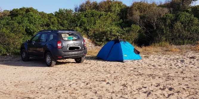 Nella foto: auto e tenda sulla spiaggia di Maria Pia