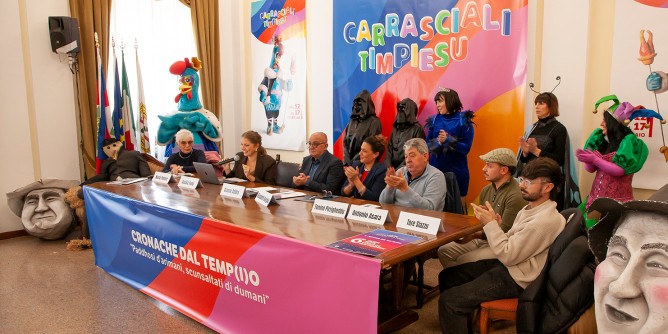 Si è tenuta la conferenza stampa di presentazione del Carrasciali Timpiesu 2026 in programma dal 12 al 17 febbraio. Cronache dal tempo, “paddhosi d’arimani, scunsaltati di dumani”: questo è il tema allegorico di questa edizione