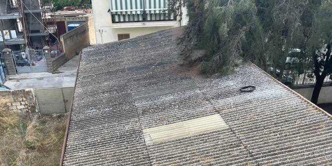 Si tratta, nel dettaglio, di un edificio di circa 400 metri quadrati, completamente coperto da un tetto in amianto visibilmente lesionato e deteriorato dal tempo, che si estende da via Deledda n. 27 fino a via Andreoni, posizionato a ridosso del muro perimetrale della scuola. Una situazione nota da anni, secondo quanto riferito, e più volte segnalata dai residenti della zona.