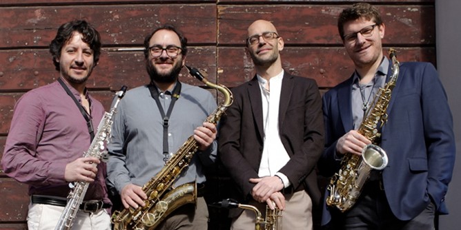 Il quartetto di sassofoni è formato dal sassarese Andrea Mocci (sax soprano), Francesco Ronzio (sax contralto), Mattia Quirico (sax tenore) e Vincent Dupuy (sax baritono), impegnati nel concerto Subway Dances, che prende il nome dall’omonima composizione dello stesso Coggiola e fa parte del programma della serata, che indaga il nesso spesso inscindibile fra suono e movimento che ha caratterizzato svariati lavori della musica strumentale e vocale dall’età antica alla modernità. Tra gli altri brani, saranno eseguiti inoltre Holberg Suite op. 40 di Edvard Grieg, Carmen fantasy su musiche di Georges Bizet, 5 Miniature di Claudio Sanna, Romanian Dances di Bela Bartok, Dance & Groove di A Manega e Symphonic Dances da West Side Story di Leonard Bernstein.