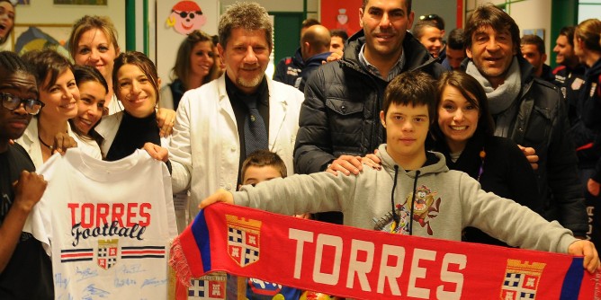 I giocatori hanno consegnato ai bambini della clinica del materiale scolastico acquistato per loro e qualche gioco per far passare più in fretta il tempo del ricovero: immancabili i palloni che hanno ovviamente fatto da protagonisti. E’ stata infatti improvvisata una mini sfida, con i pazienti sul dischetto a tirare i rigori prima ed in porta a parare quelli dei giocatori della Torres poi. In chiusura un augurio del primario «Spero di potervi vedere tra qualche mese nel nuovo reparto e poter festeggiare insieme a voi il trasferimento ed il vostro raggiungimento della permanenza nella C unica».