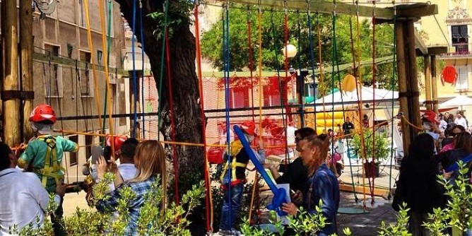 SASSARI – Ma chi l’ha detto che i bambini non possono vivere un’avventura in città? Nei giorni scorsi, in occasione della rassegna florovivaistica “Il Centro in fiore”, nell’area blu Ztl di Sassari è stato possibile vivere l’esperienza di gioco proprio come in un vero Parco grazie a “Le Piccole Ragnatele”, una struttura modulare rimovibile in legno e acciaio, unica nel suo genere in Italia, che ricrea in miniatura i percorsi avventura del grande Parco Le Ragnatele di Alghero. Dedicata ai bimbi di età compresa tra i 2 e i 7 anni, è stata ospitata per tutta la durata dell’iniziativa nella splendida Piazza Duomo, all’interno dell’area Florgarden dedicata alle attività del “Centro in Fiore Baby”.