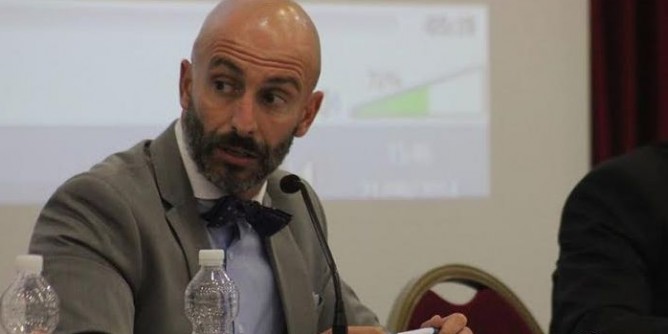 Nella foto: Angelo Tarantini durante la convention di Bologna