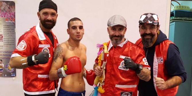 Nella foto: Samuele Cuccuru ed il Team Tarantini Muay thai boxing